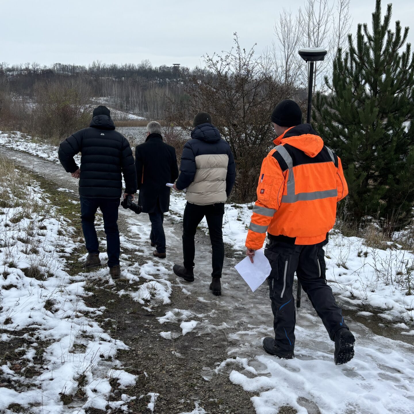 Im Dezember haben wir uns gemeinsam mit dem von uns beauftragten Vermessungsbüro und Vertretern der Stadt Mücheln zur Grenzvermessung des Baugrundstückes getroffen. Dabei sind wir gemeinsam die Grundstücksgrenze abgeschritten.